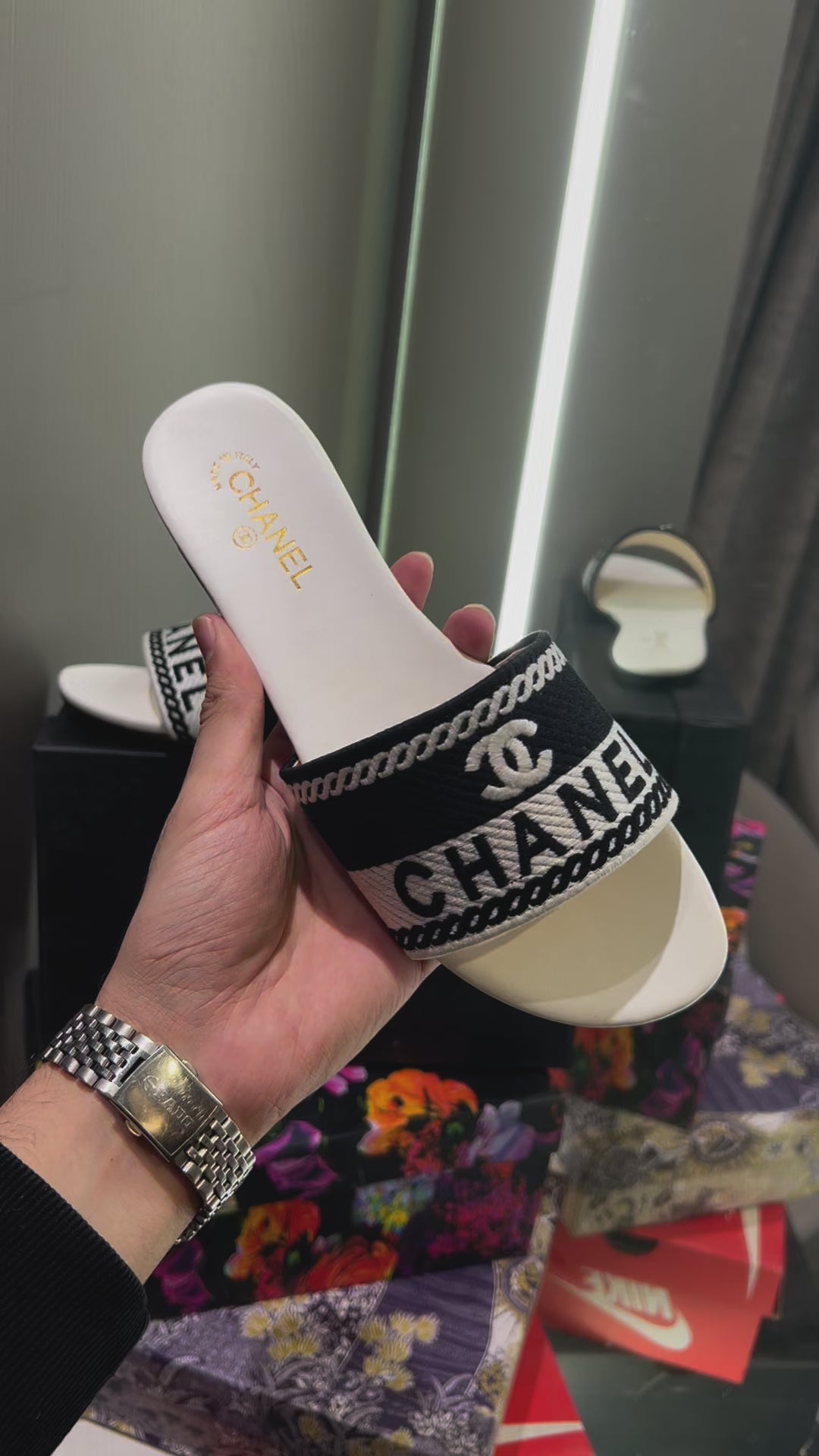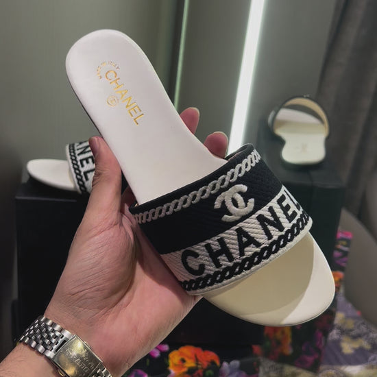 Chanel White Logo Design With Og Dust Bag And Box Luxury Sandels