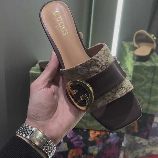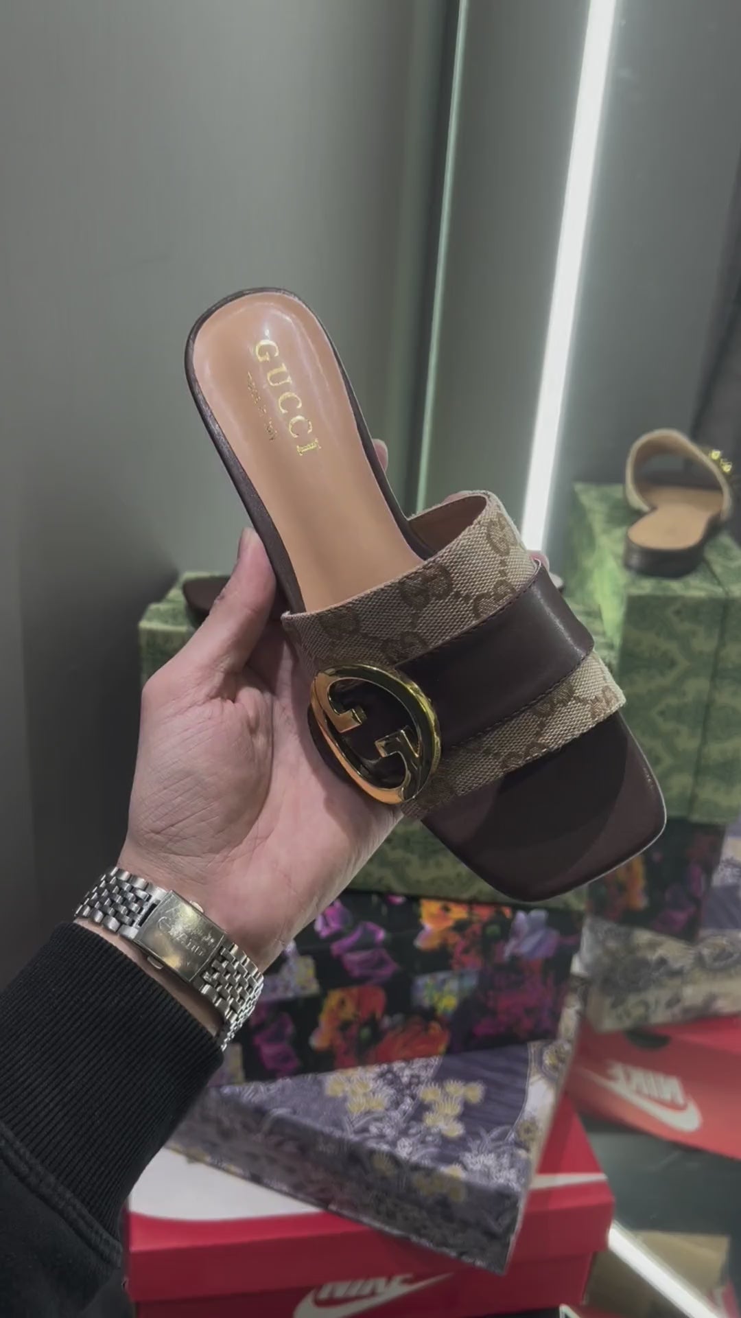 Gucci Brown Logo Luxury Sendels With Og Dust Bag And Box