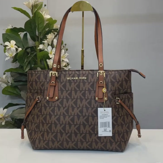 Michael Kors Voyager Brown Luxury Tote Bag Witth Side Pocket And Dust Bag