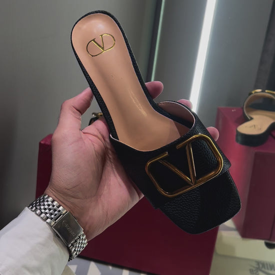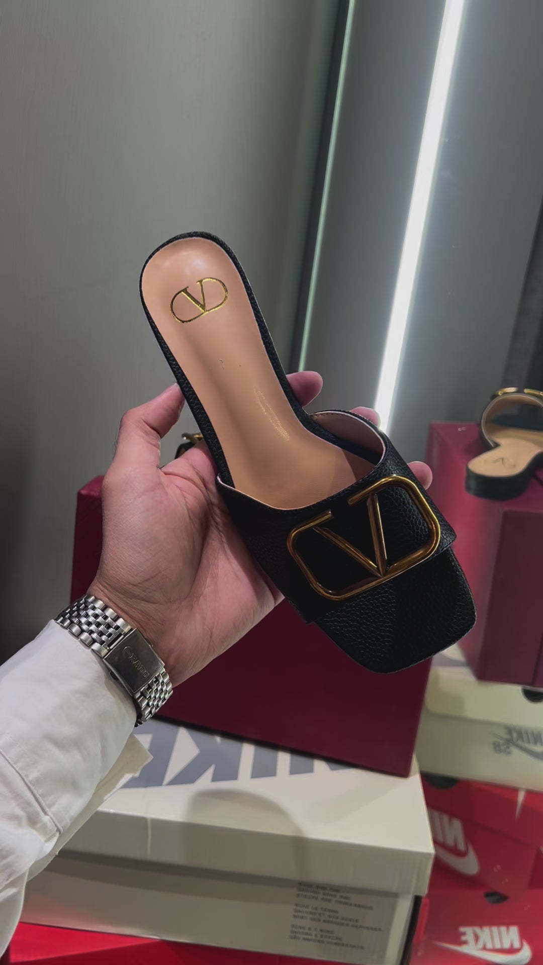 Valentino All Black Logo Design Luxury Sendels With Og Dust Bag And Box