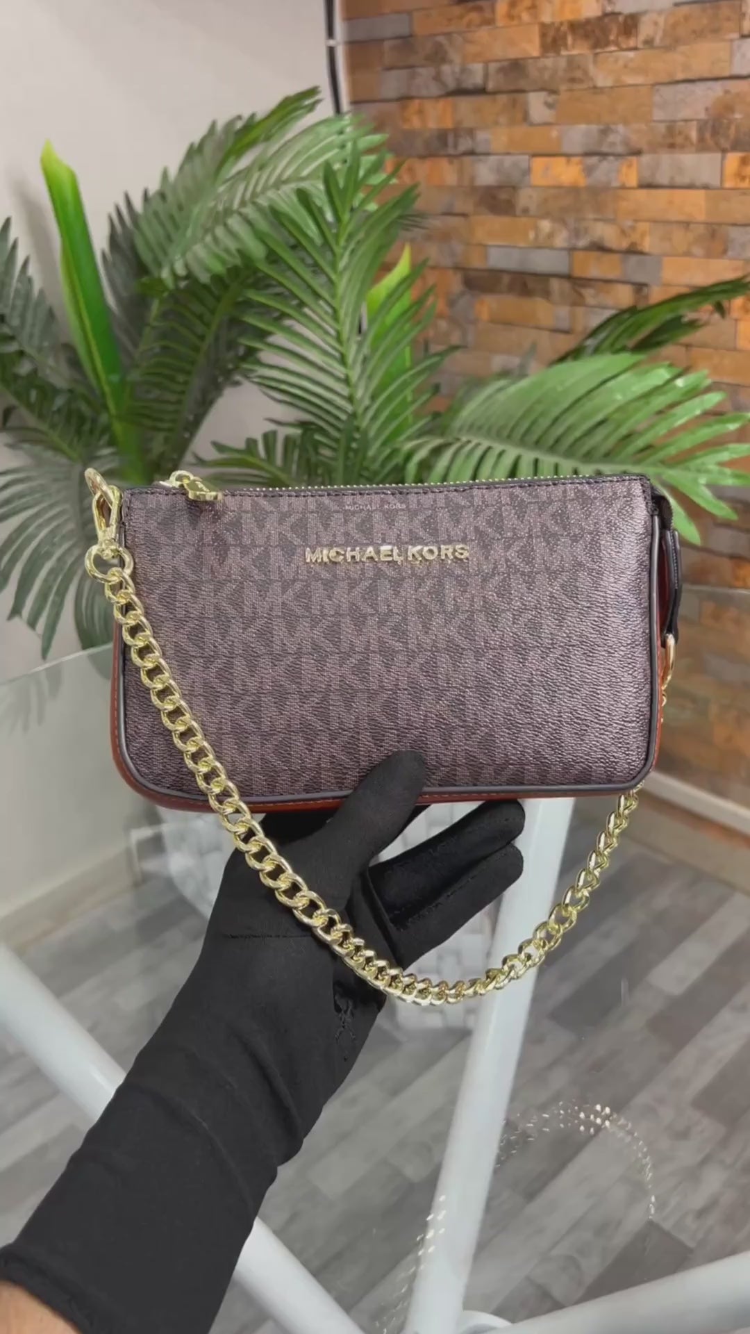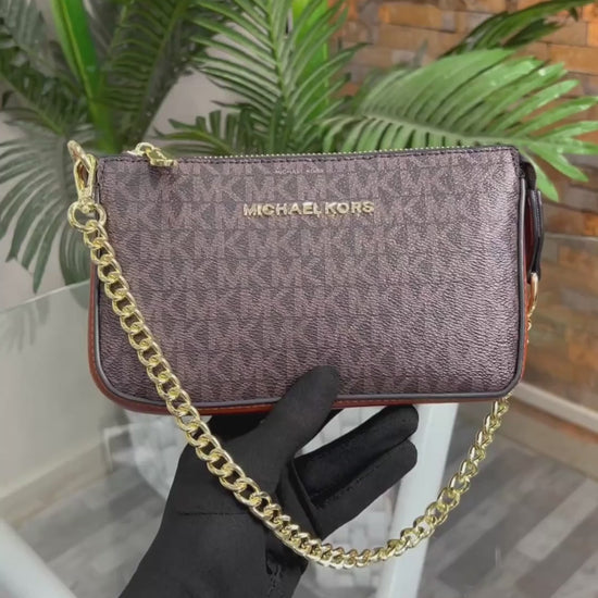 Michael Kors Brown Chain Pouchette Luxury Bag