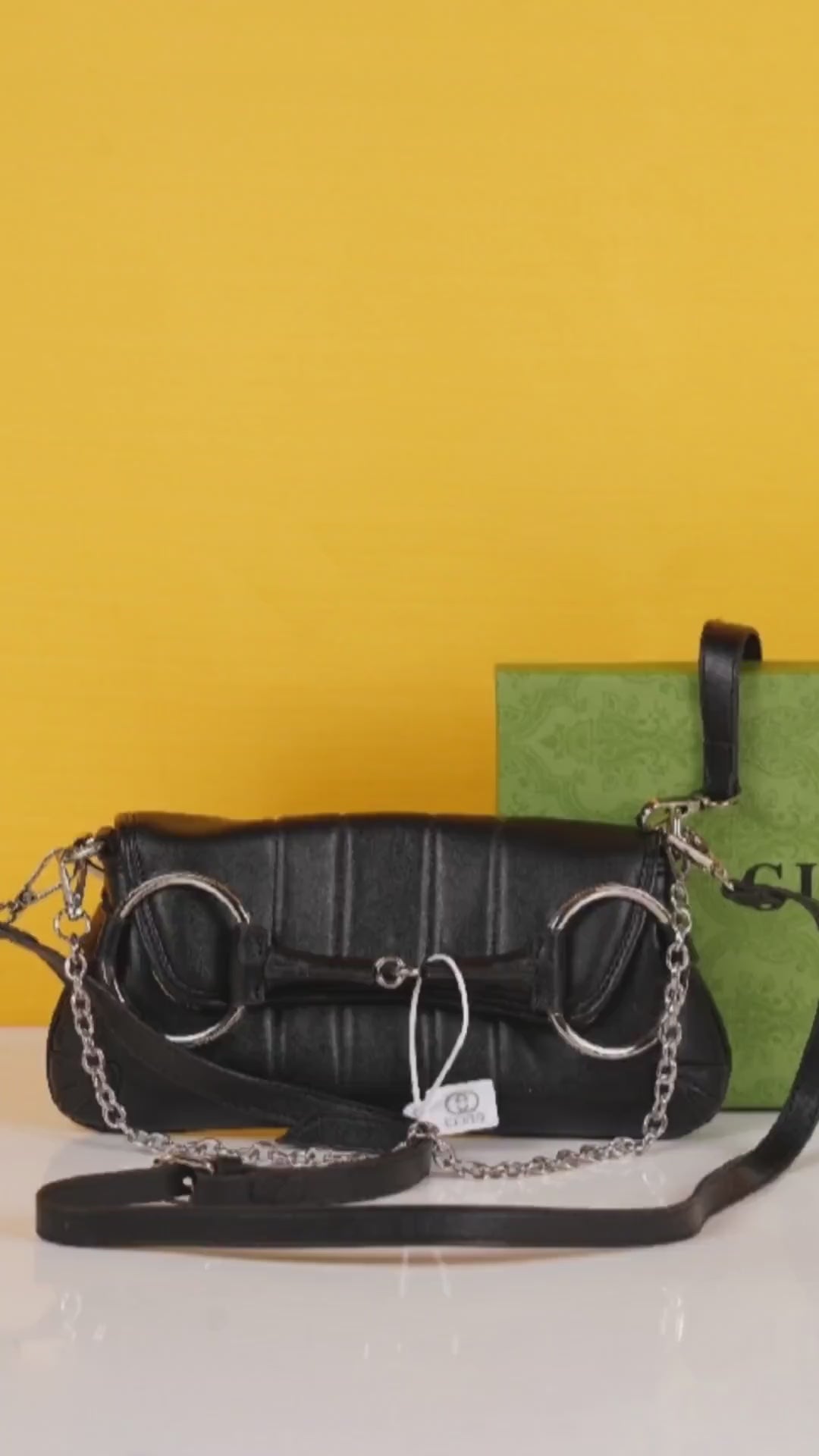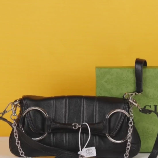 Gucci Black GG Horsebit Chain Premium Shoulder Bag