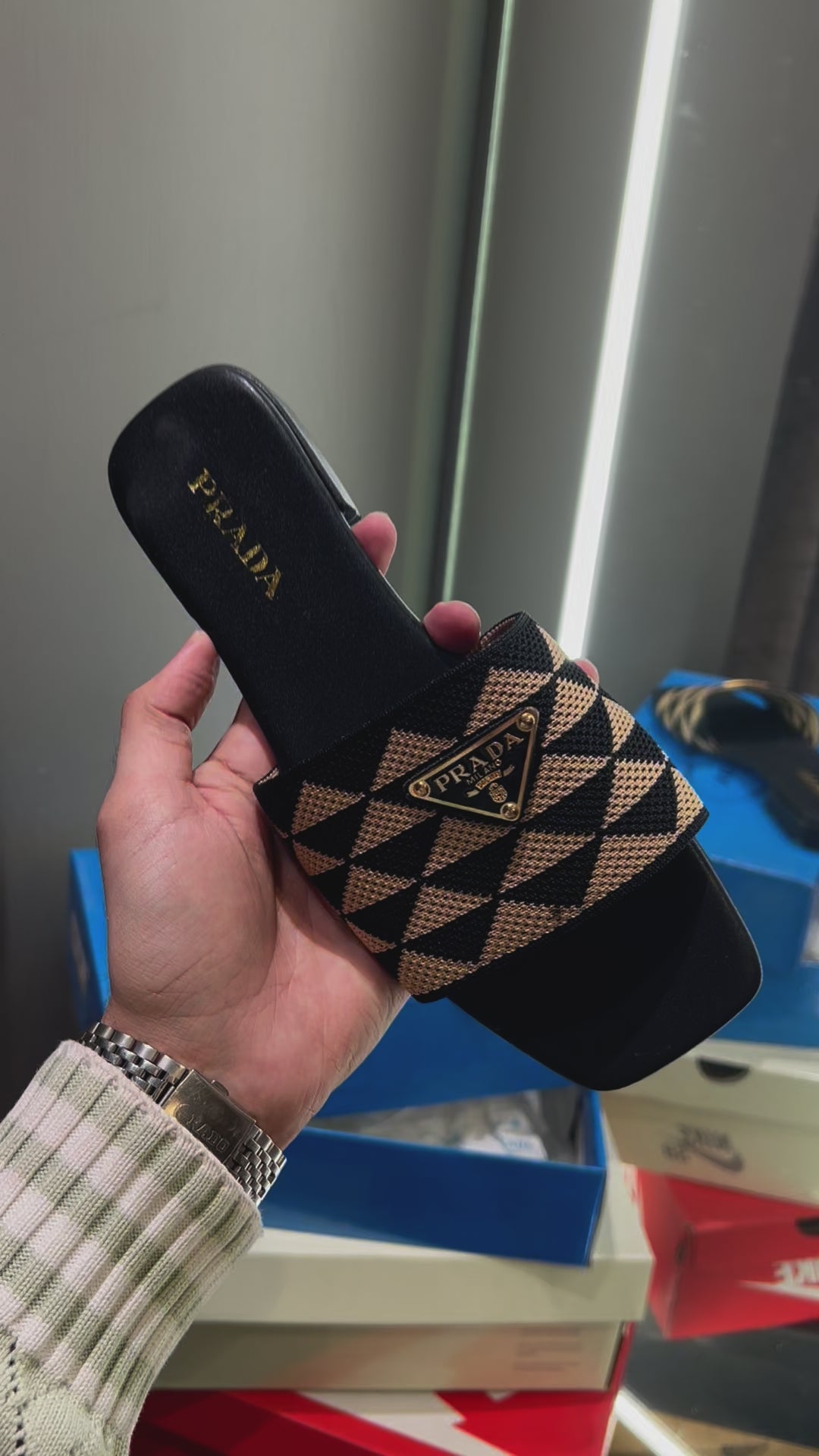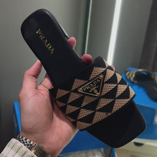 Prada Milano Black Geometric Logo With Og Dust Bag And Box Luxury Sandels