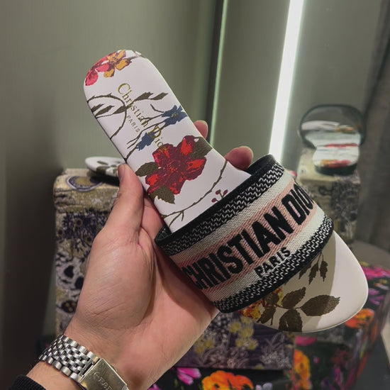 Christian Dior White Flower Edition With Og Dust Bag And Box Luxury Sandels