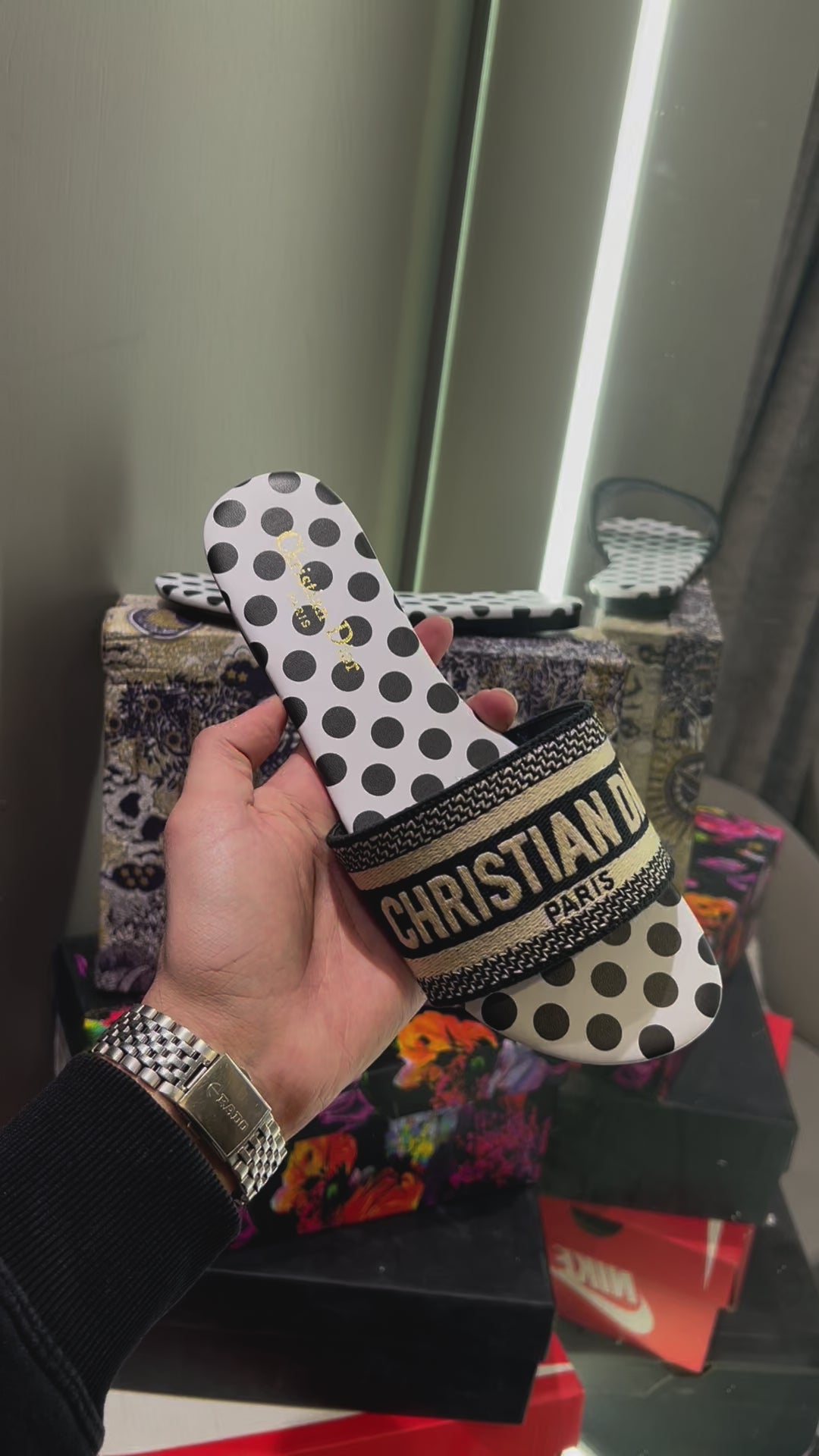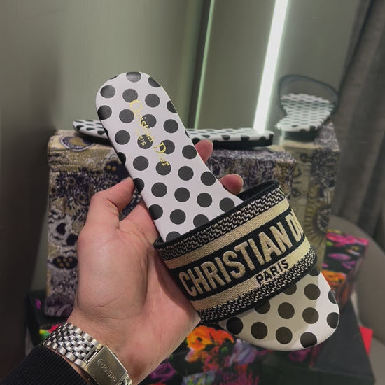 Cristian Dior Black White Logo Design With Og Dust Bag And Box Luxury Sandels