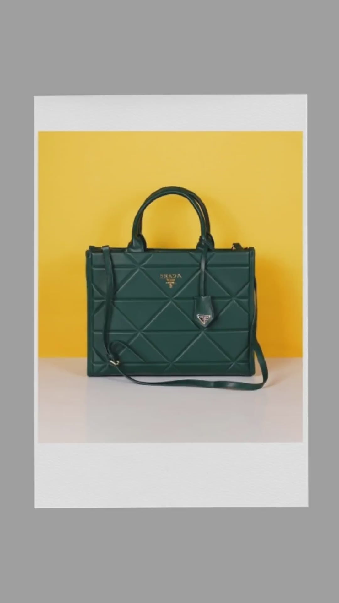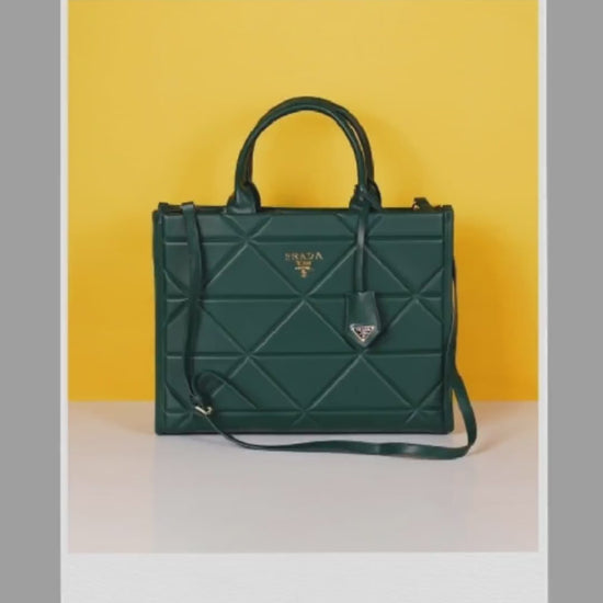 Prada Green Leather Symbol Luxury Tote Bag With Dust Bag