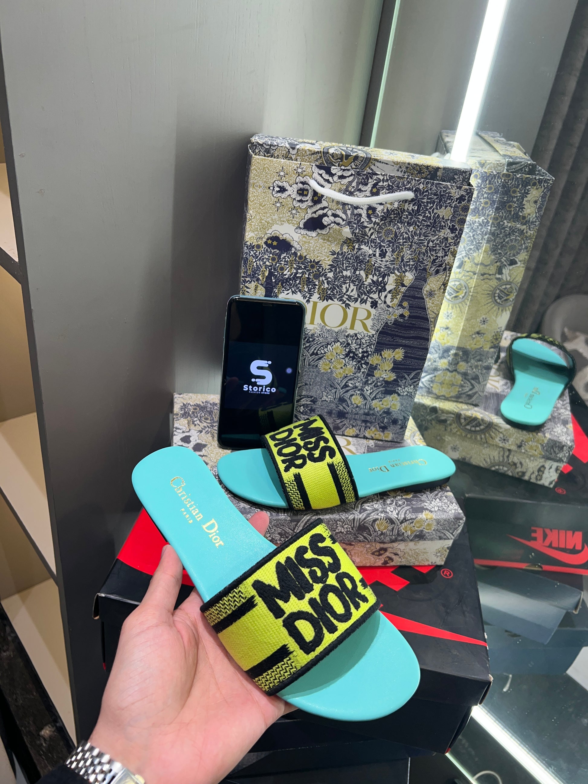 Christian Dior Green Luxury Sendels With Og Dust Bag And Box