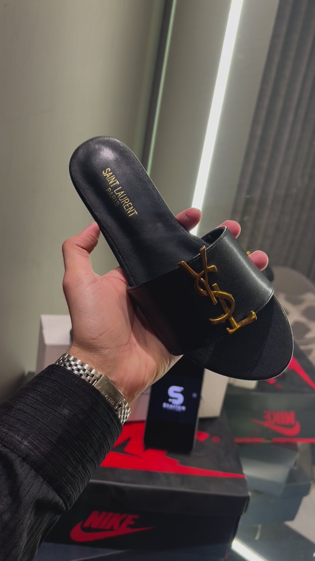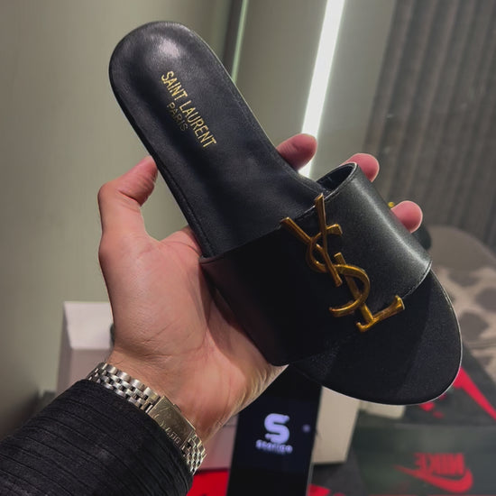 Saint Laurent Black With Gold Logo Design Luxury Sanedels