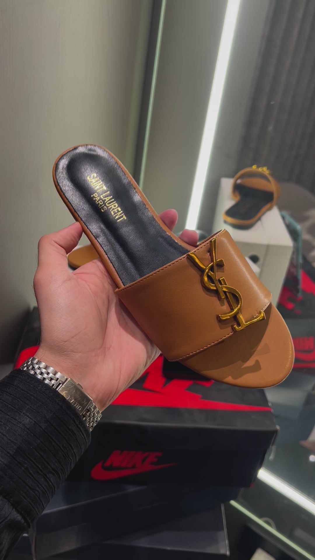 Saint Laurent Brown With Gold Logo Design Luxury Sanedels