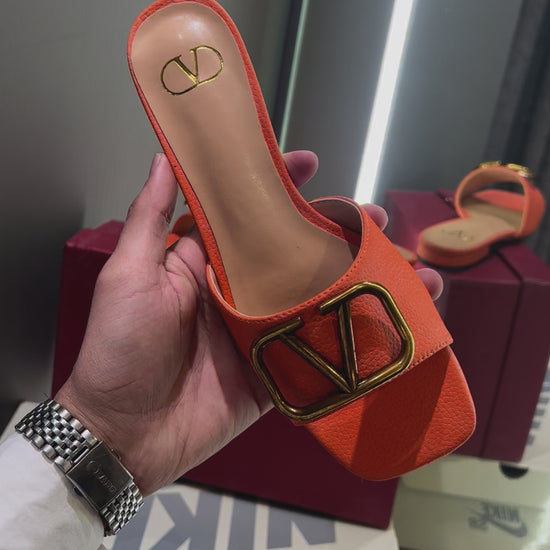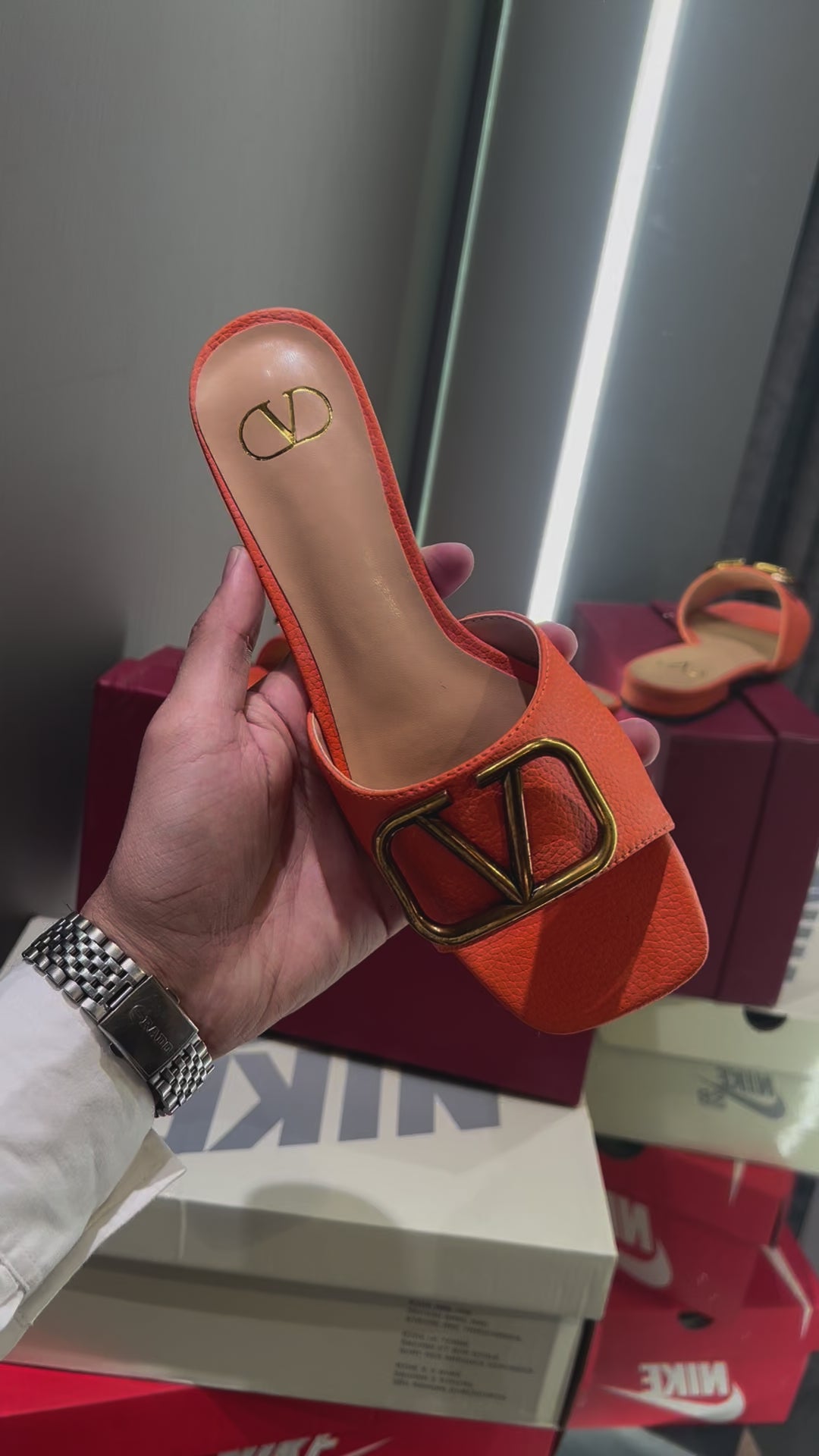 Valentino All Orange Logo Design Luxury Sendels With Og Dust Bag And Box